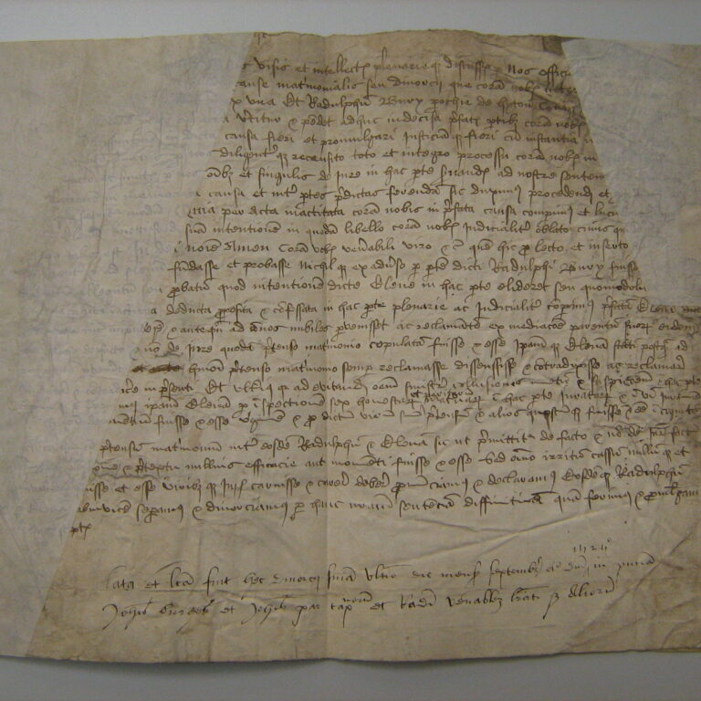 This is the earliest of the surviving Chester Cause Papers and was heard while the consistory court was under the control of the archdeacon of Chester in the bishopric of Coventry and Lichfield.
