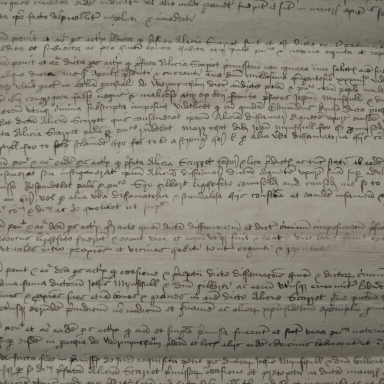 […] dictam Aliciam Scaryot quis causauerat ipsam Aliciam diffamare Agnetam vxorem eiusdem Edmundi