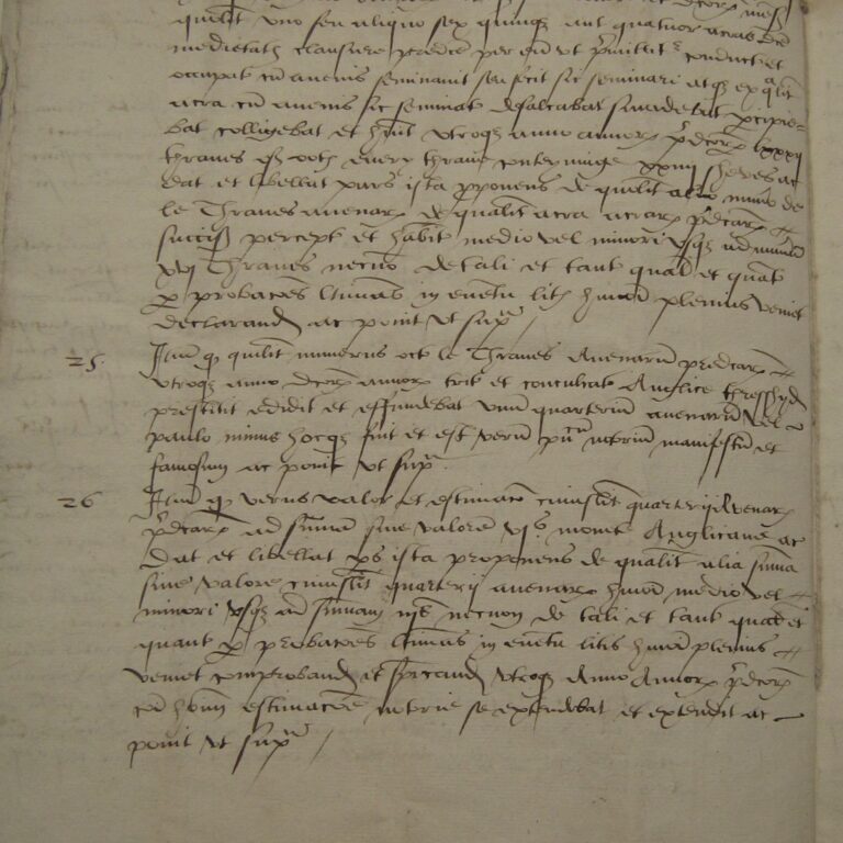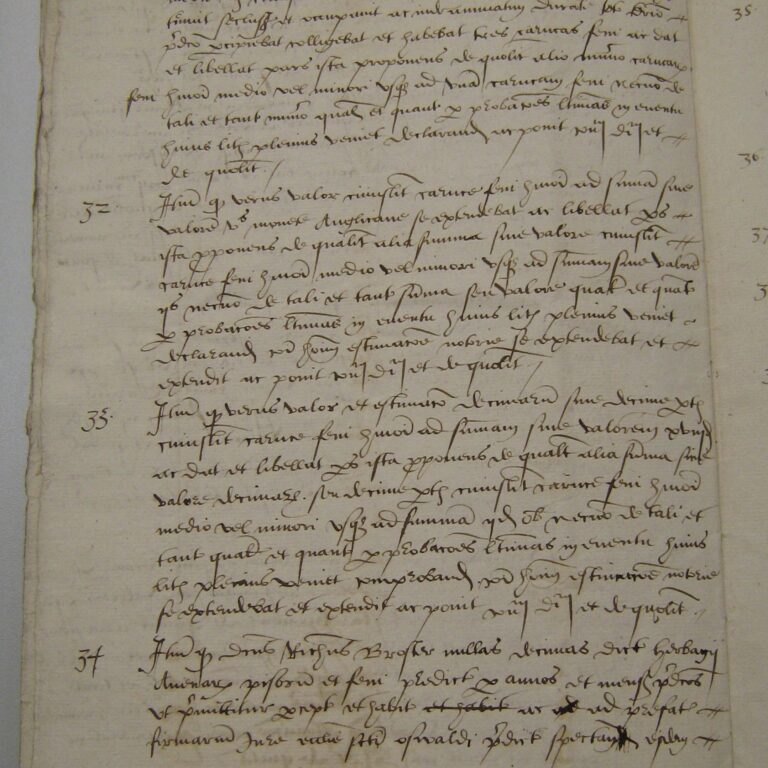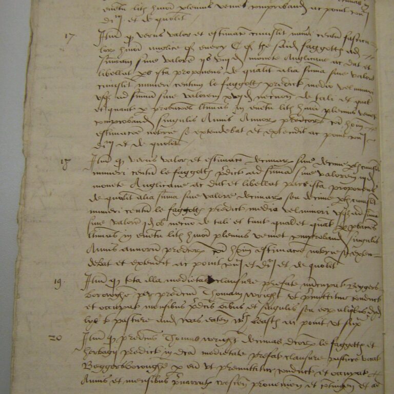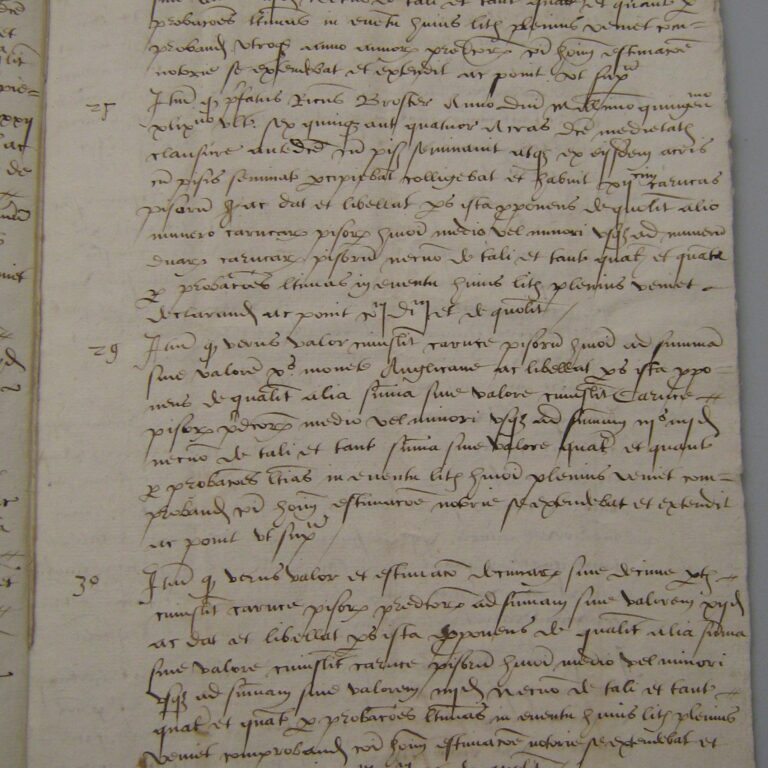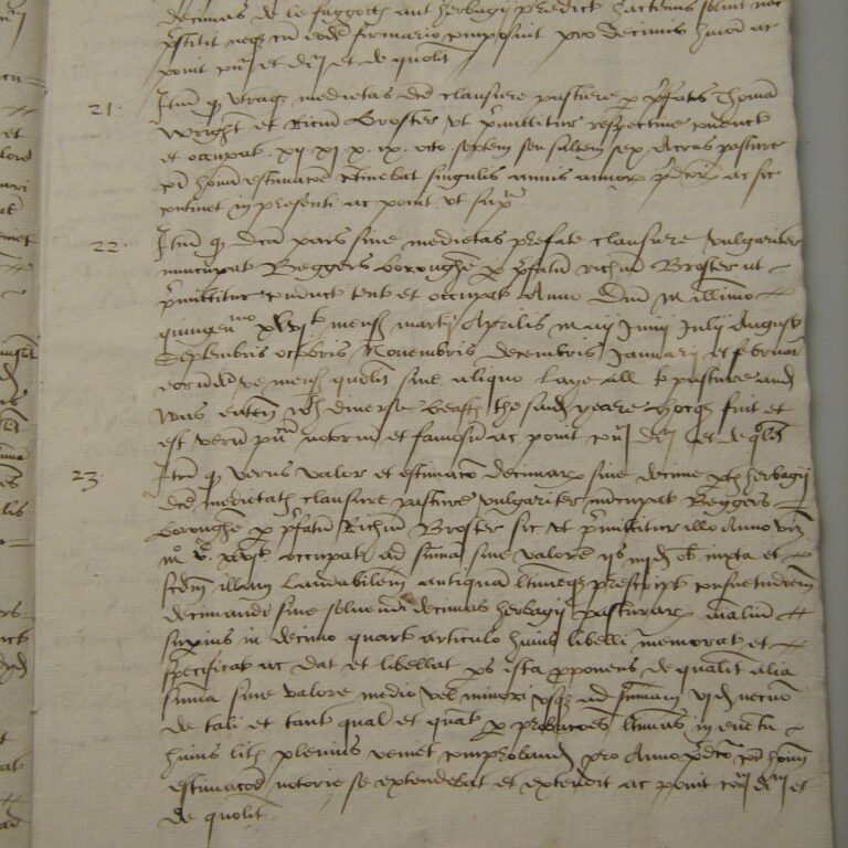 31 Also, that the aforesaid Richard Broster in the one thousand five hundred and forty sixth, 47th, 48th and 49th years of our Lord last, or in any of those years whatever, in one or other, held, kept and occupied two acres of meadow of the said half close aforesaid commonly called ‘Beggars boroughe’ and from there each year during the whole time aforesaid he took, collected and had three cartloads of hay, and this party propounding submits and libels of whatever other intermediate or lesser number of cartloads of this hay down to one cart load and also of such and so great a number of such sort and amount as may come to be declared more fully in the outcome of this suit; and he propounds jointly, severally and concerning any of these points.