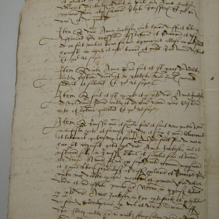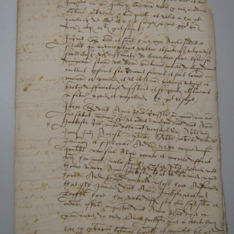 Also, that the said Anne Jones, not being ignorant of the premises but forgetful of the welfare of her soul, being induced, as it is believed, by an evil spirit, in the months of March, April, May, June, July, August, September, October, November, December, January and February in the year of our Lord 1580, or in any of those months whatsoever, in one or other of them, seriously and grievously defamed the said Anne Jackson, previously in no way defamed, namely these English words which follow ‘what Robert Ireland wilt thowe marry Anne Jackeson’ meaning the said Anne Jackson ‘that is a maried mans hore And beinge demaunded whose hore Answered that she’ meaning the said Anne Jackson ‘was Mr Leghes hore’ the said Anne Jones said and pronounced these defamatory words or others similar to these and importing the same effect of the same Anne Jackson, as will become clear and appear by lawful proofs in the event of this suit; and he propounds as before.