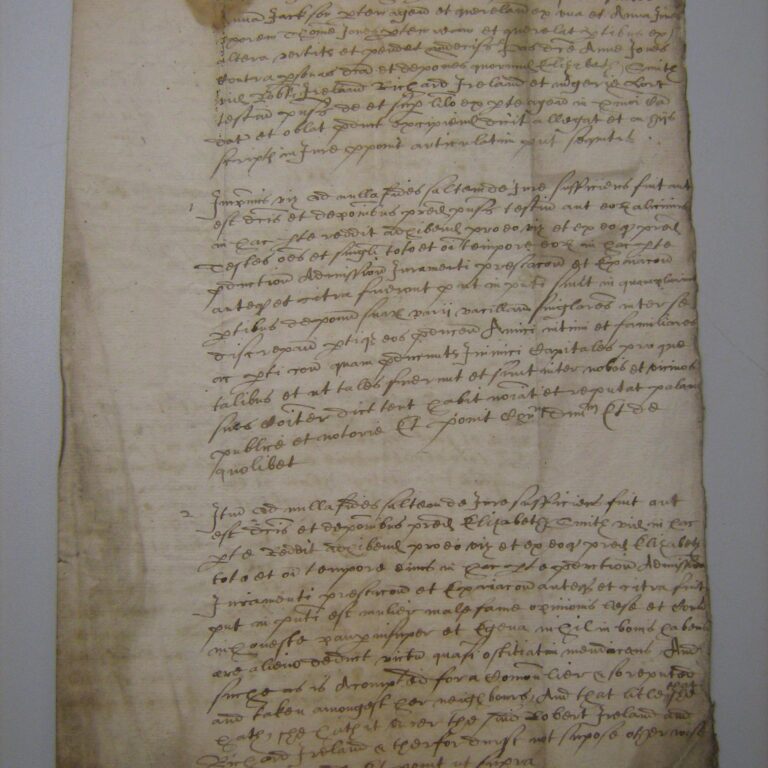 […] the party of the honest woman, Anne Jackson, of the parish of Prestwich against Anne Jones, wife of Thomas Jones, of the parish of Middleton of Chester diocese and of your jurisdiction and against any other person whomsoever lawfully intervening before you in judgement for the same, by way of complaint and complaining to you in this behalf says, alleges and propounds in these writings in law jointly, severally and in articles as follows: