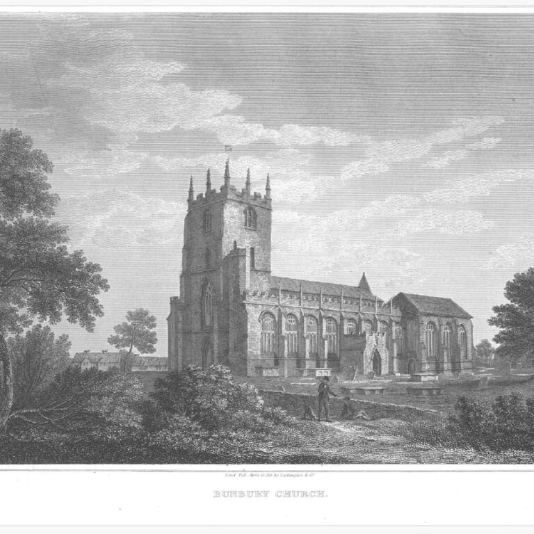 This extensive parish is situated on the Cheshire Plain between Nantwich and Tarporley. It comprised eleven townships, Alpraham, Beeston, Bunbury, Burwardsley, Calveley, Haughton, Peckforton, Ridley, Spurstow, Tilston Fearnal, Tiverton and Wardle.