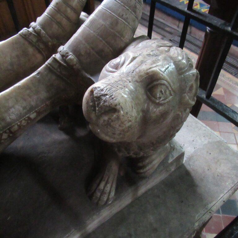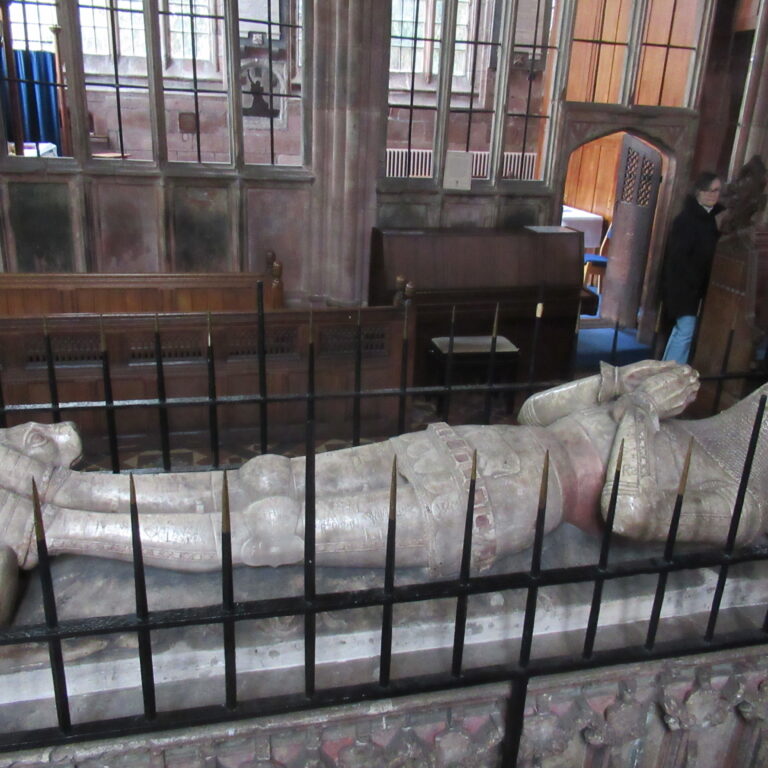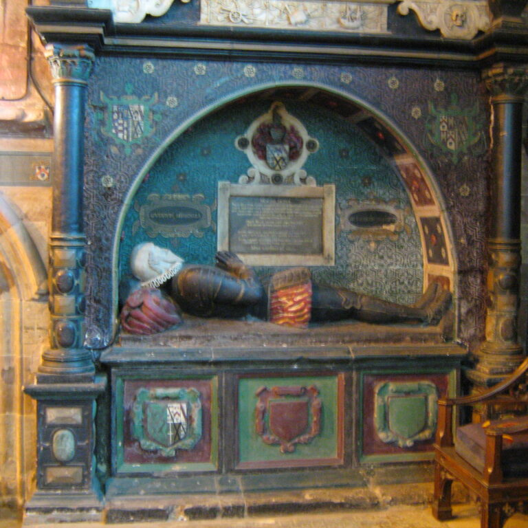 A colourful tomb commemorates Sir George Beeston, Admiral of the Fleet, who played a part in the defeat of the Spanish Armada in 1588. He is said to have lived to the age of 102.