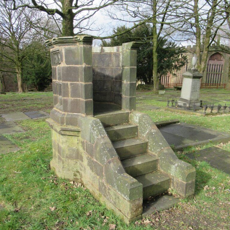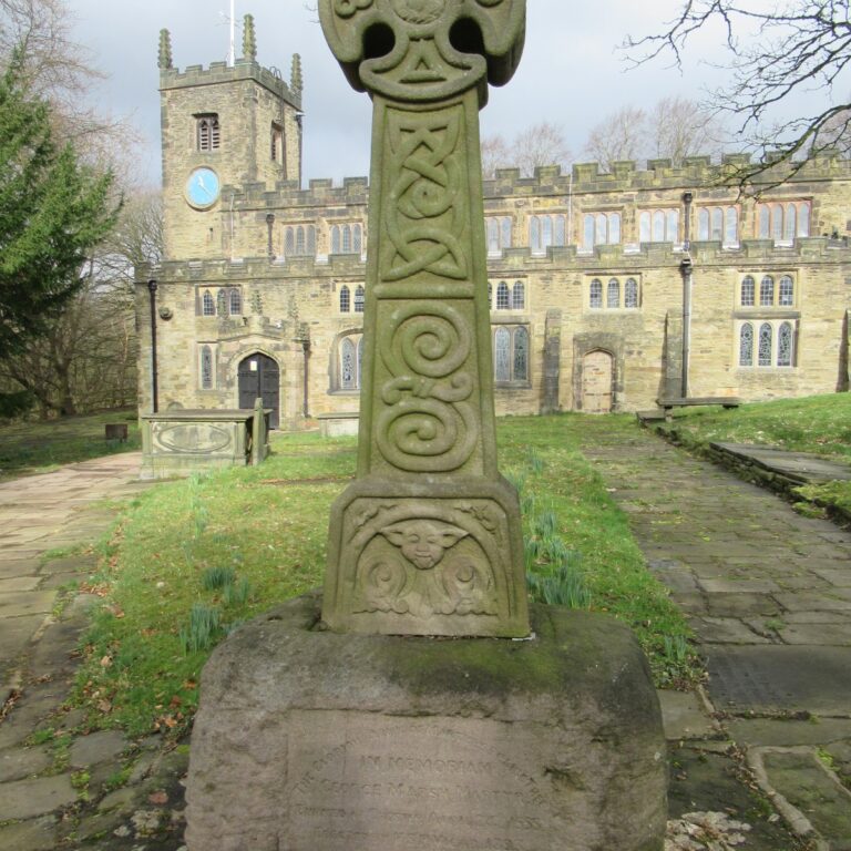 In the churchyard is a memorial to George Marsh, the Protestant martyr, who was born in the parish of Deane and taken prisoner while preaching there. Immediately after his arrest he was taken to Smithills Hall in the township of Halliwell, before being transferred to prison and then to Chester, where he was tried in the Consistory Court and burned at the stake in 1555.