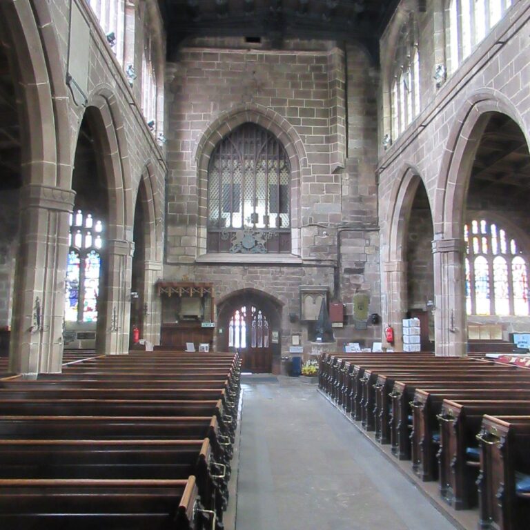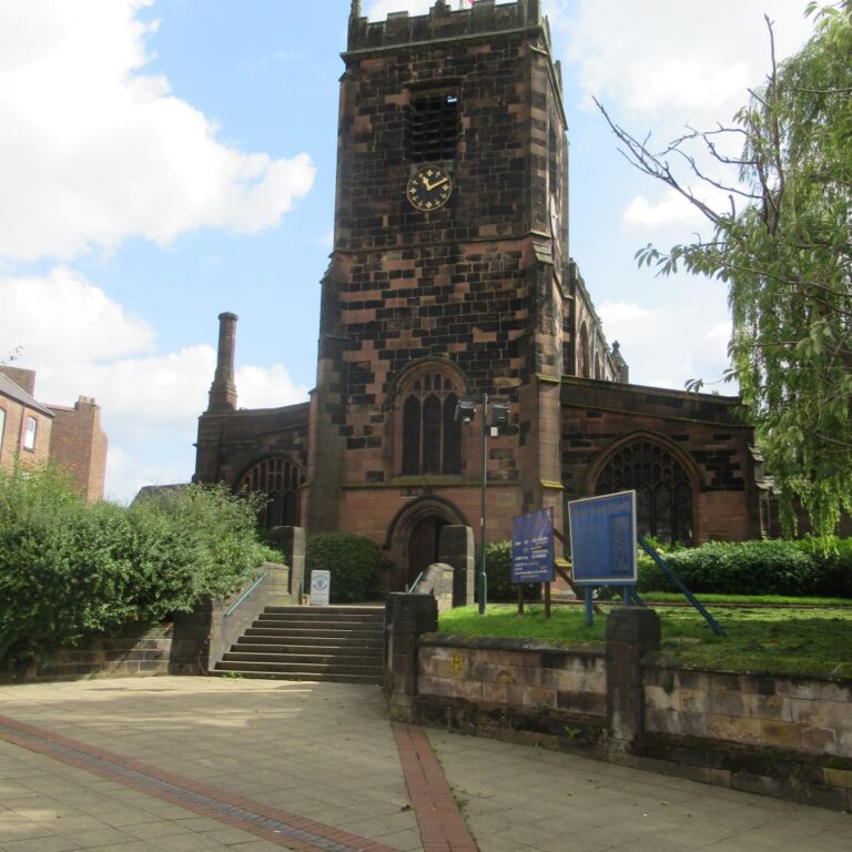 The church, which is listed Grade 1 on the National Heritage List for England, is now surrounded by high-rise blocks and a shopping centre, and the churchyard has mostly been grassed over.