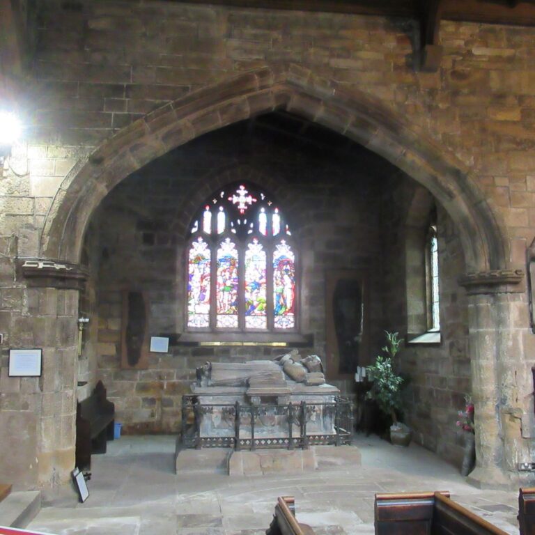 The parish church building is in the later English style and although there has been a church here since Norman times, the earliest surviving parts of the present building are said to date from the thirteenth-century, including the base of the tower. Fourteenth-century elements include the arch leading into the south transept and the studded inner door of the south porch. The church may have been built on the site of an earlier chapel as part of a Celtic cross was discovered nearby. The building was comprehensively reconstructed in the fifteenth and sixteenth centuries but then remained virtually unchanged until the nineteenth century when it was, again, substantially restored in 1862. The tomb of Richard Brereton and his wife and son survives from the seventeenth century. The brass plates on the ends of the pews record who was entitled to sit in them.