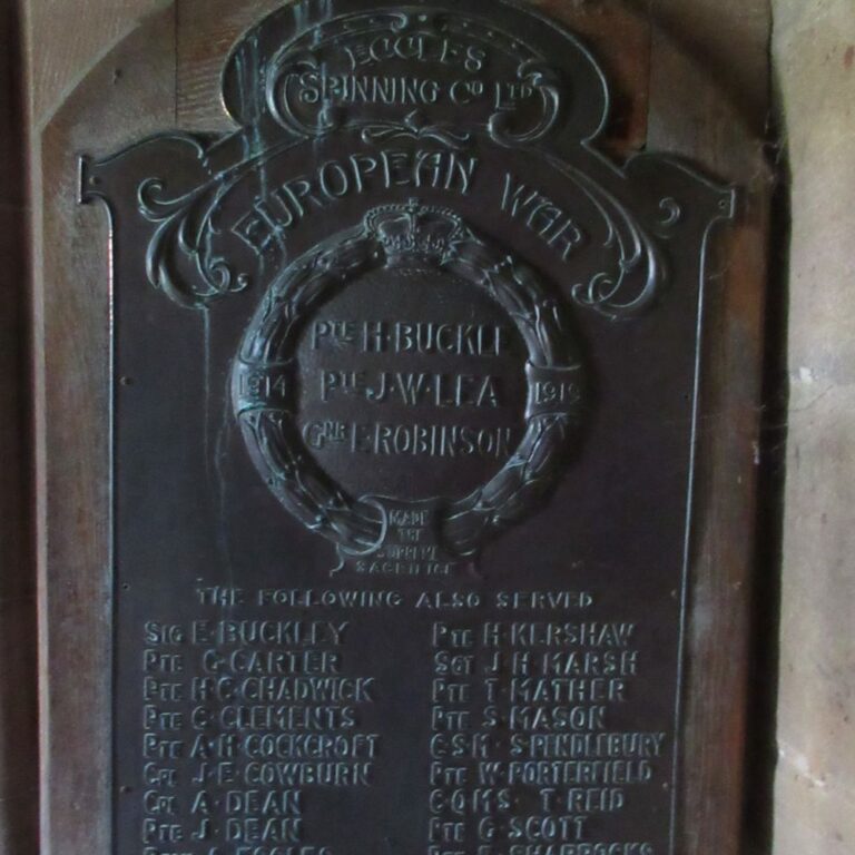 The area of the parish included part of Chat Moss, moss being the local word for a peat bog. This area was waste until drainage schemes began in the early nineteenth century, and it has now largely been reclaimed. Most of the agriculture in the parish consisted of grazing and there was little arable land until this reclamation. Coal mining had begun in the parish by the sixteenth century and the development of canals in the eighteenth century stimulated development not only of the coal industry, but also textile weaving and spinning. A war memorial in the church records employees of Eccles Spinning Company Ltd. who served in the First World War.