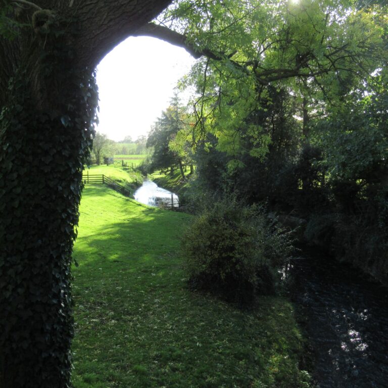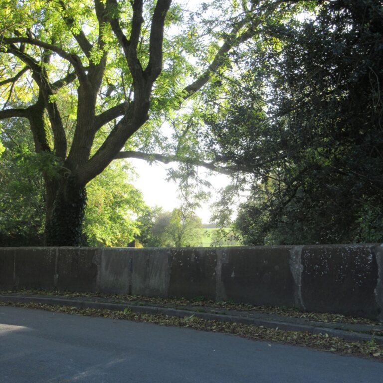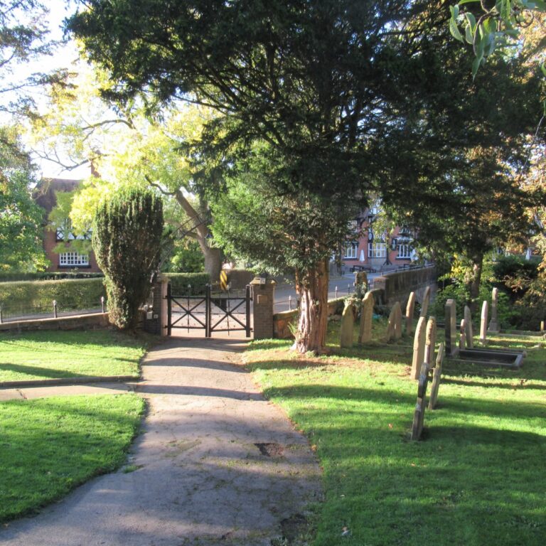 A single arch sandstone bridge, dating from about 1750, carries the road between Crewe and Middlewich past the church over the River Wheelock.