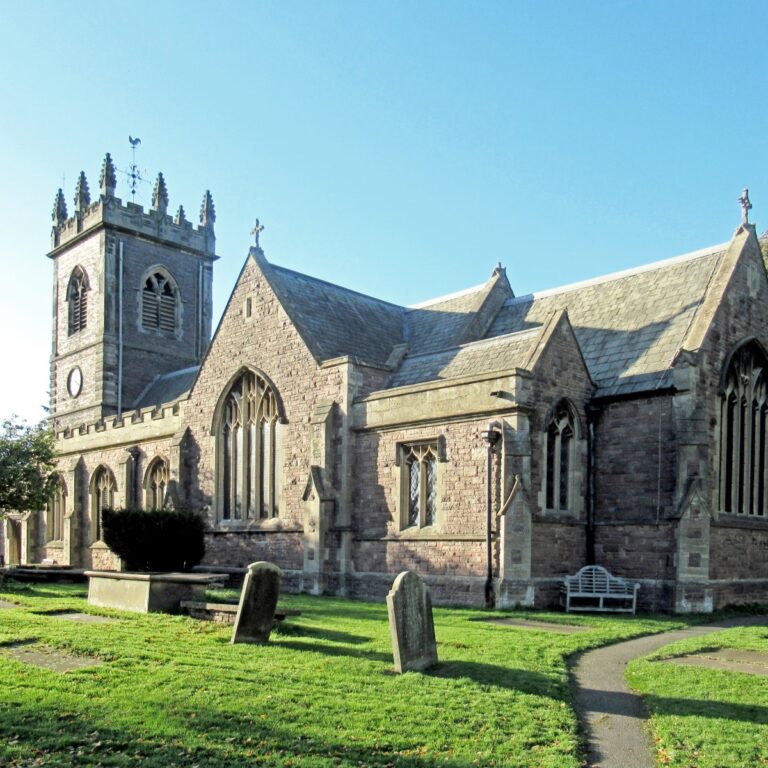 The medieval timber-framed parish church, of which nothing now survives, was rebuilt in brick and stone in 1715. The chancel and body of the church were rebuilt in 1797 and in 1870 the chancel, nave and transept were again reconstructed, leaving only the tower surviving from 1715, although that has some later alterations.