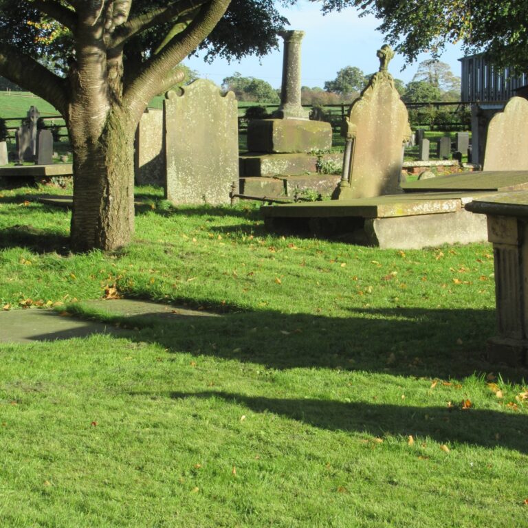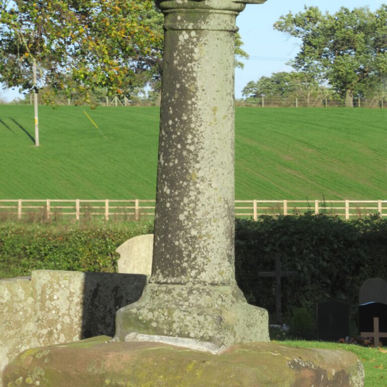 The sandstone base of a medieval cross still stands in the churchyard, topped by a later column which held a sundial at one time. A late sixteenth-century farmhouse, with later alterations and extensions, may still be seen opposite the church.
