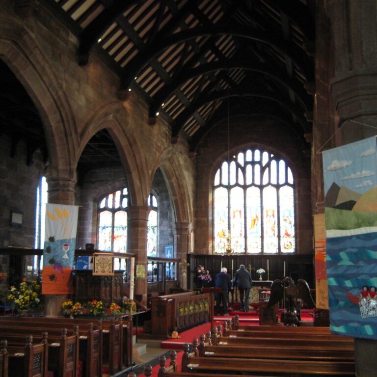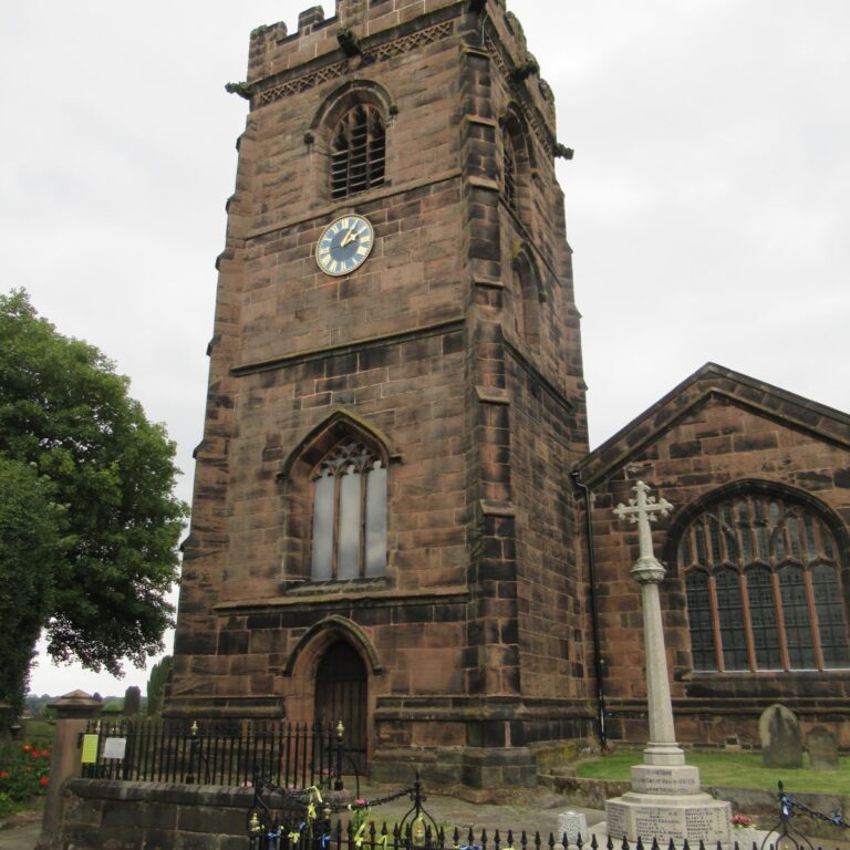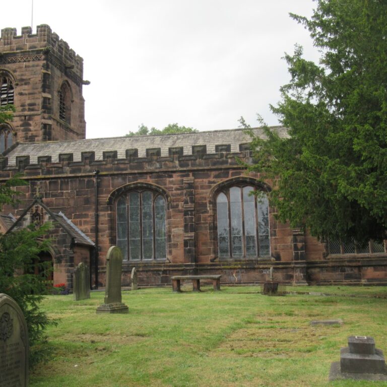 It is thought that there has been a church on the site of the present parish church since Saxon times. The present church is built largely of sandstone and, apart from the addition of a south porch, the exterior remains much as it was following rebuilding in the late fifteenth century. Inside there was later alteration including the addition of linenfold panelling and a wooden ceiling, said to have come from Vale Royal Abbey church.